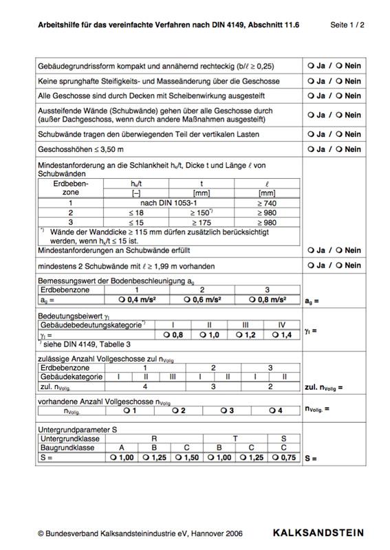 Checkliste zur Anwendung des vereinfachten Verfahrens nach DIN 4149 (Erdbeben)