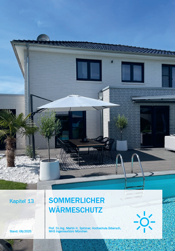 Kapitel 13 erläutert den sommerlichen Wärmeschutz in Kalksandsteinbauweise vor dem Hintergrund des Klimawandels. Es beschreibt bauphysikalische Grundlagen, Einflussfaktoren wie Fensterflächen, Sonnenschutz, Nachtlüftung und Speichermasse sowie die Nachweisführung nach GEG und DIN 4108-2. Anhand praxisnaher Beispiele und Simulationen wird gezeigt, wie massive Bauweisen Überhitzung vermeiden und hohen sommerlichen Wohnkomfort sichern.